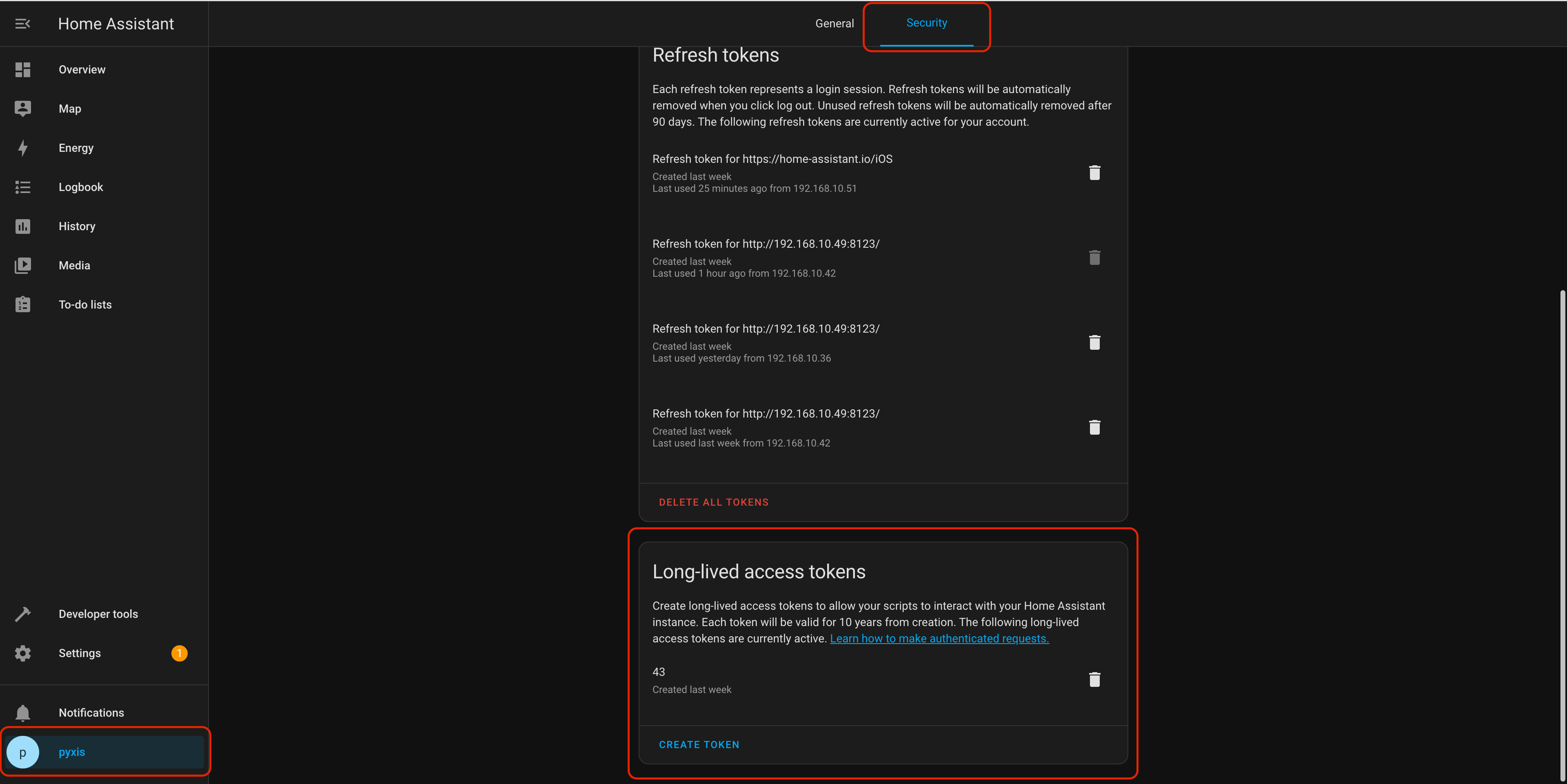 Long-lived token you need to create in Home Assistant settings (Profile ==> Security ==> Long-lived access token ==> Create token):